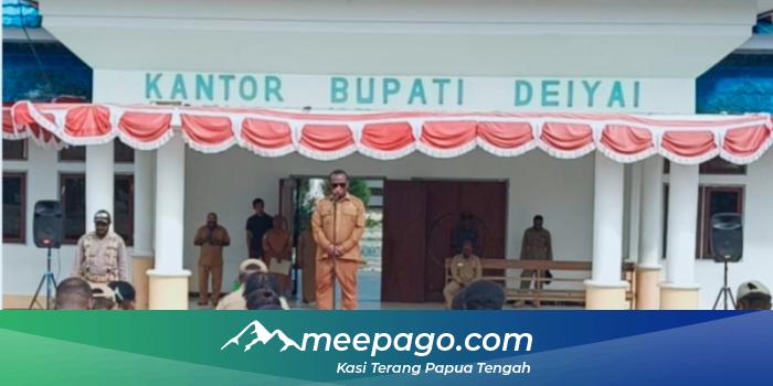 MEEPAGO.COM- Bupati Deiyai, Melkianus Mote, memimpin apel perdana Tahun 2026 yang digelar di halaman Kantor Bupati Deiyai, Senin (5/1/2026). Apel tersebut diikuti ribuan Aparatur Sipil Negara (ASN) dari seluruh organisasi perangkat daerah (OPD) di lingkungan Pemerintah Kabupaten Deiyai.