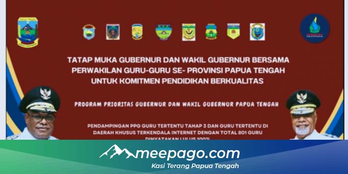 MEEPAGO.COM- Pemerintah Provinsi Papua Tengah menjadwalkan pertemuan tatap muka antara Gubernur dan Wakil Gubernur Papua Tengah dengan perwakilan guru dari seluruh kabupaten/kota, Selasa (6/1/2026) siang. Agenda tersebut akan berlangsung di Ballroom Kantor Gubernur Papua Tengah, Nabire.