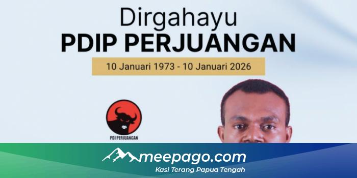 MEEPAGO.COM-Dewan Pimpinan Wilayah (DPW) Partai Ummat Provinsi Papua Tengah menyampaikan ucapan selamat Hari Ulang Tahun (HUT) ke-53 kepada Partai Demokrasi Indonesia Perjuangan (PDI Perjuangan) yang diperingati pada 10 Januari 2026.Ucapan tersebut disampaikan langsung oleh Ketua DPW Partai Ummat Papua Tengah, Oya Pigome, S.T, yang mewakili keluarga besar Partai Ummat di Papua Tengah.