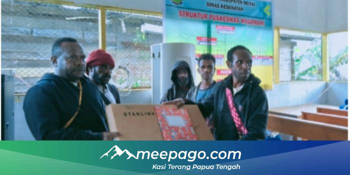 MEEPAGO.COM- Kepala Dinas Komunikasi, Informatika dan Persandian Kabupaten Deiyai, Oktopia Mote, menyerahkan tiga unit perangkat internet satelit Starlink di Kampung Wagomani, Distrik Tigi Barat, Sabtu (14/2/2026). Fasilitas tersebut dipasang di sejumlah titik guna memperkuat layanan publik dan mendukung aktivitas masyarakat setempat.